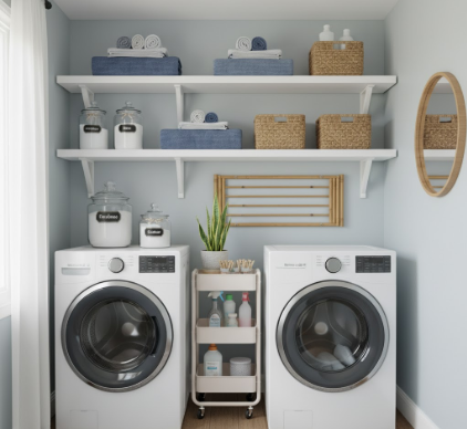 A Pro Tip for Planning: Before you buy a single basket or shelf, measure your space. Then measure it again. In a small laundry room, a single inch can be the difference between a perfect fit and a frustrating return. Also, take a quick inventory of what you need to store. Prioritize access for daily-use items (detergent, stain spray) versus weekly or monthly items (bulk supplies, extra cleaning rags). This will determine whether something deserves prime real estate on an open shelf or can be tucked away in a higher cabinet or pedestal drawer.